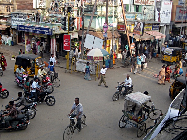 Madurai - evening trafic - as seen from the first floor of a sweets shop